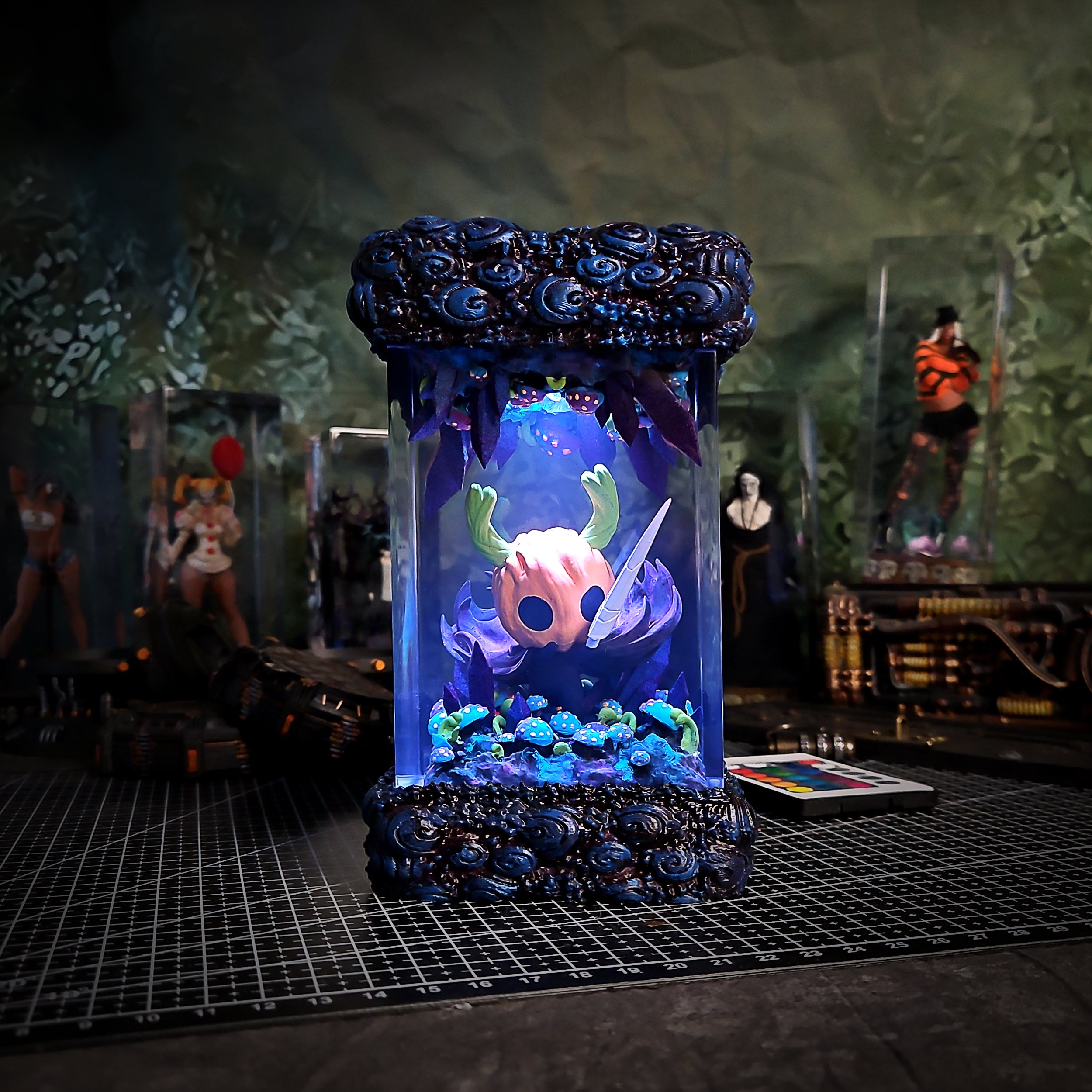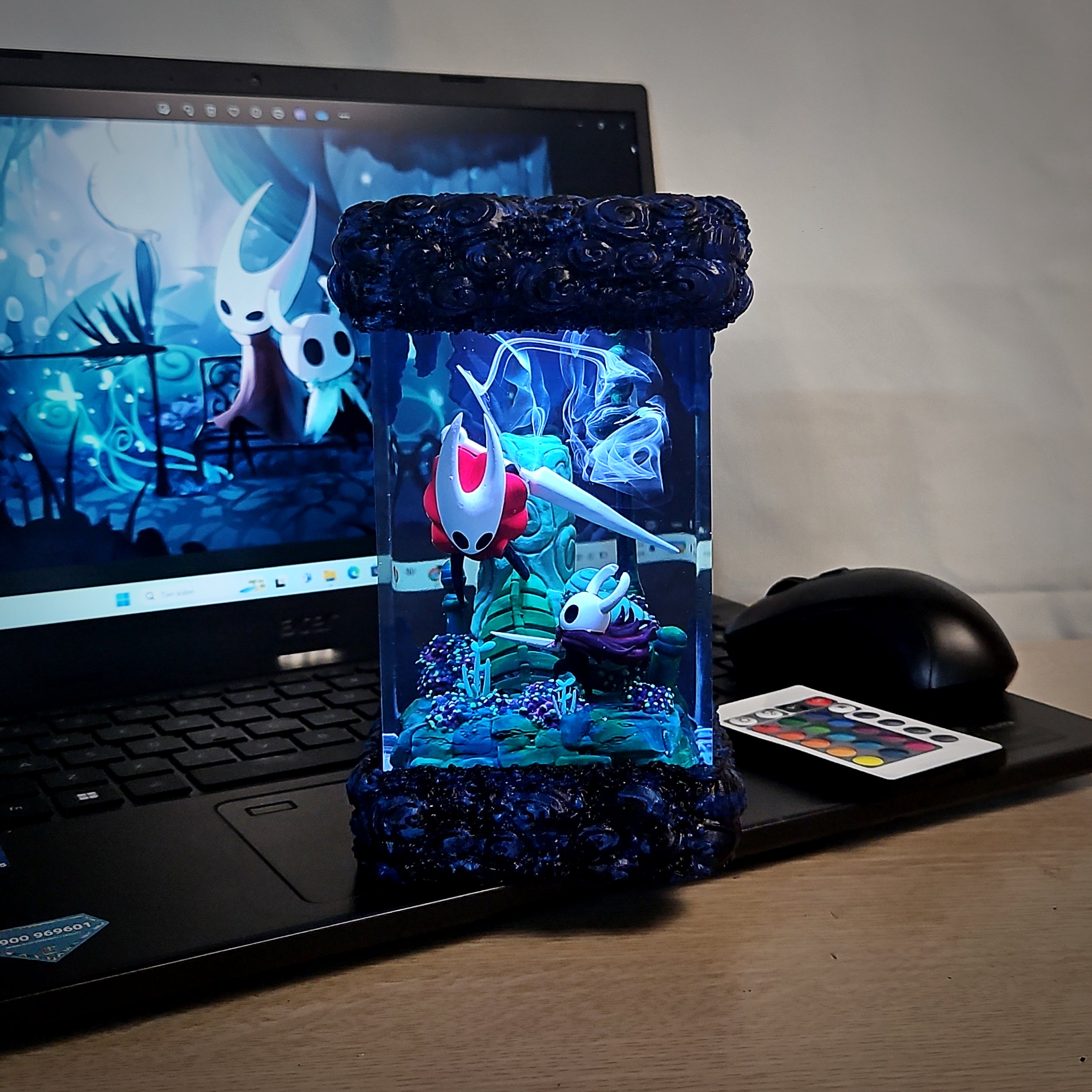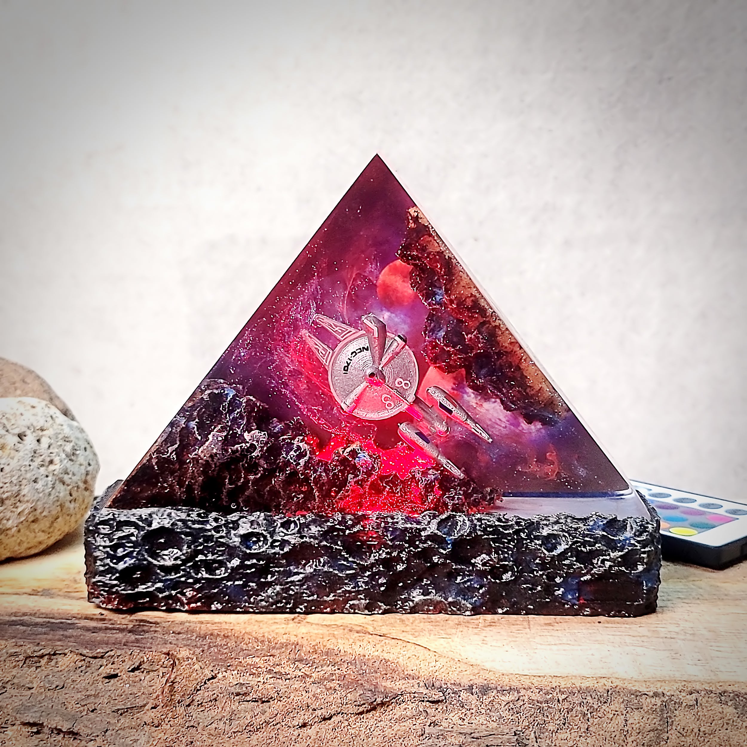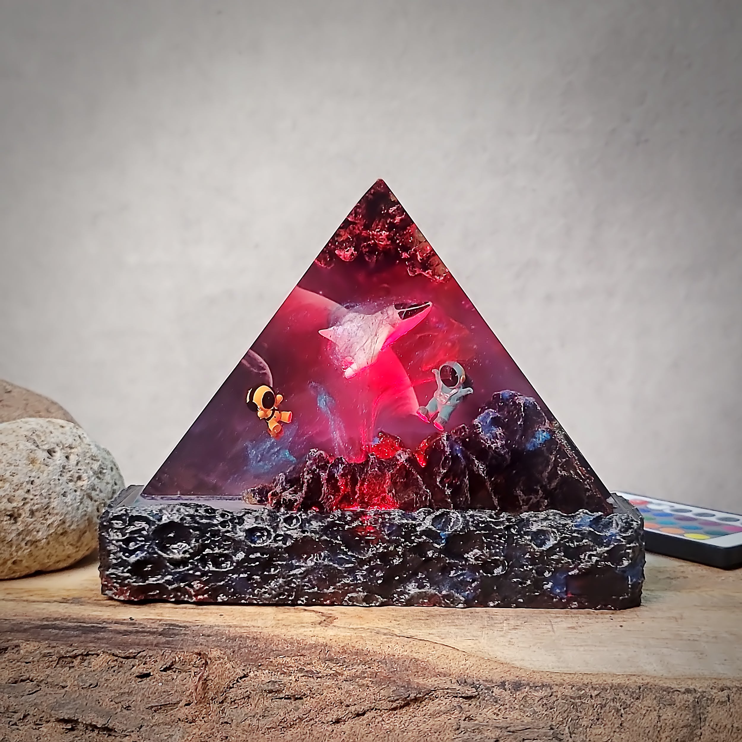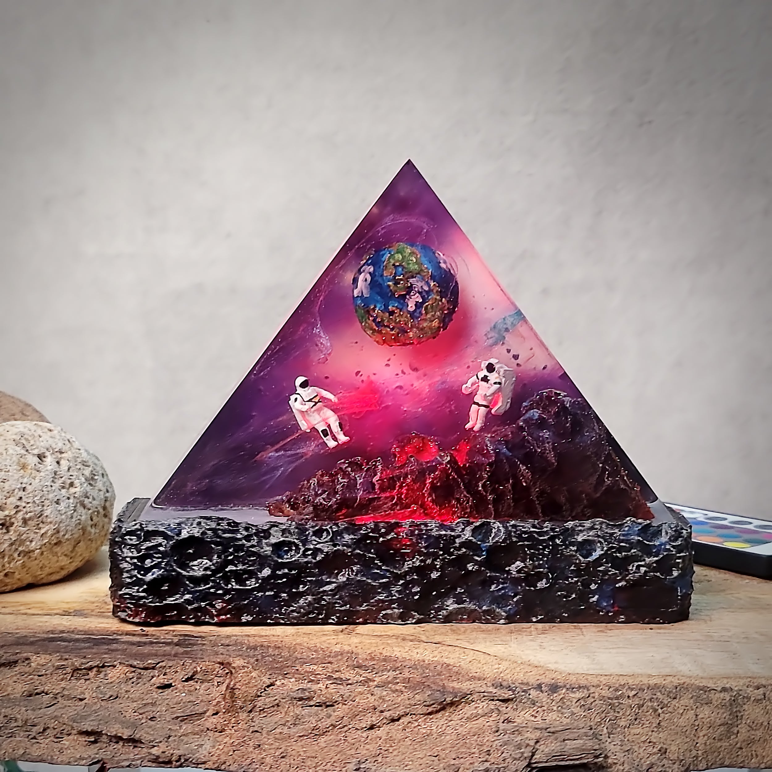 I’m a resin artist myself, and I’m impressed! This piece is flawless, and the LED lighting is soft and ambient. Looks beautiful both lit and unlit.
